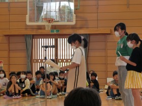 5/23 演劇教室がありました。児童が一緒に声を出す場面や,舞台を大きく見せる工夫があり,とても楽しかったです。